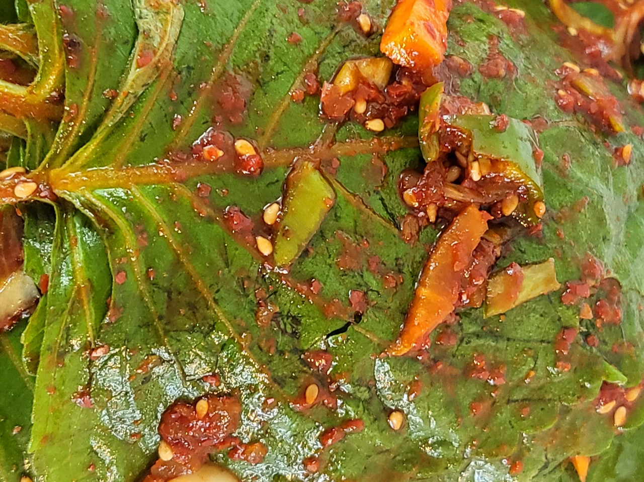 이 재료들은 단순히 색감을 위한 것이 아니라, 씹는 식감과 향의 층을 형성하는 역할을 합니다. 특히 쪽파는 깻잎의 향과 잘 어울리며 김치 전체의 균형을 잡아주는 역할을 합니다.