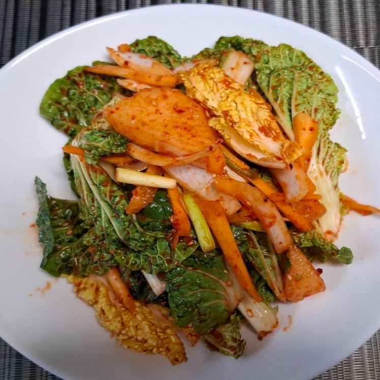 - 겉절이 단독 비빔(깔끔형): 겉절이 + 김가루 + 참기름 아주 소량 + 깨