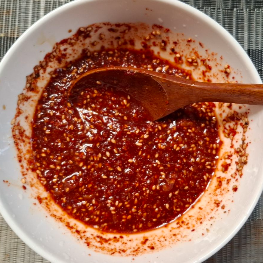 - 매운맛이 강한 고춧가루면 고춧가루를 2.5큰술로 줄이고, 대신 통깨와 식초로 맛의 윤곽을 세우기