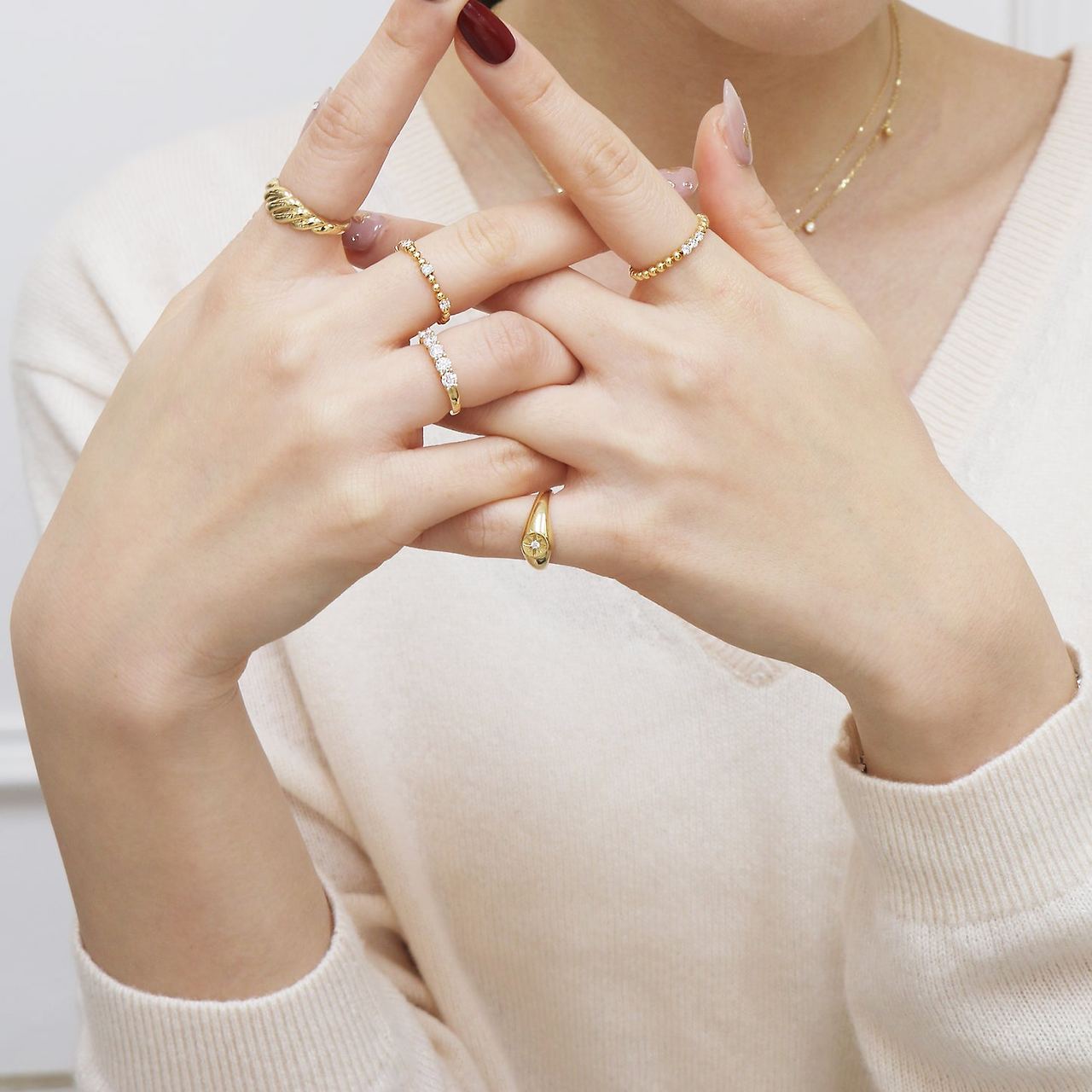 18K·14K는 주얼리 시장에서 실사용 내구성(경도), 색감(로즈-옐로-화이트), 디자인 구현 때문에 합금이 표준처럼 자리 잡았습니다.
