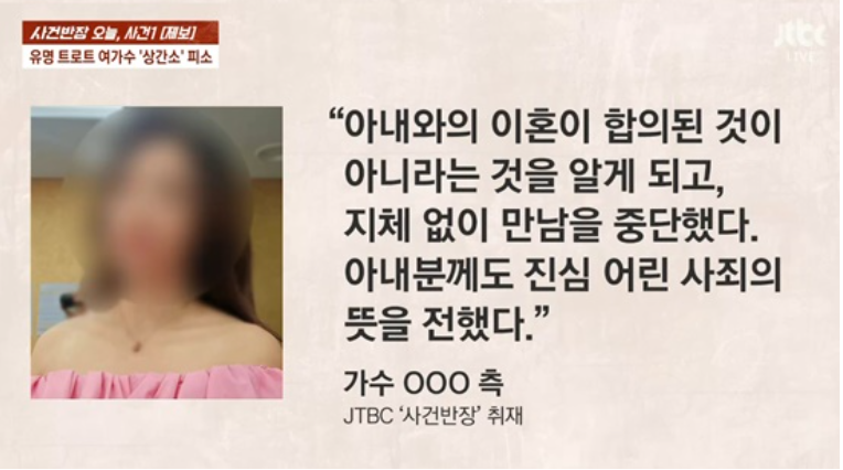 - 제보자의 주장에 따르면, 배우자는 문제의 여가수와 친구 관계라고 설명해 왔음